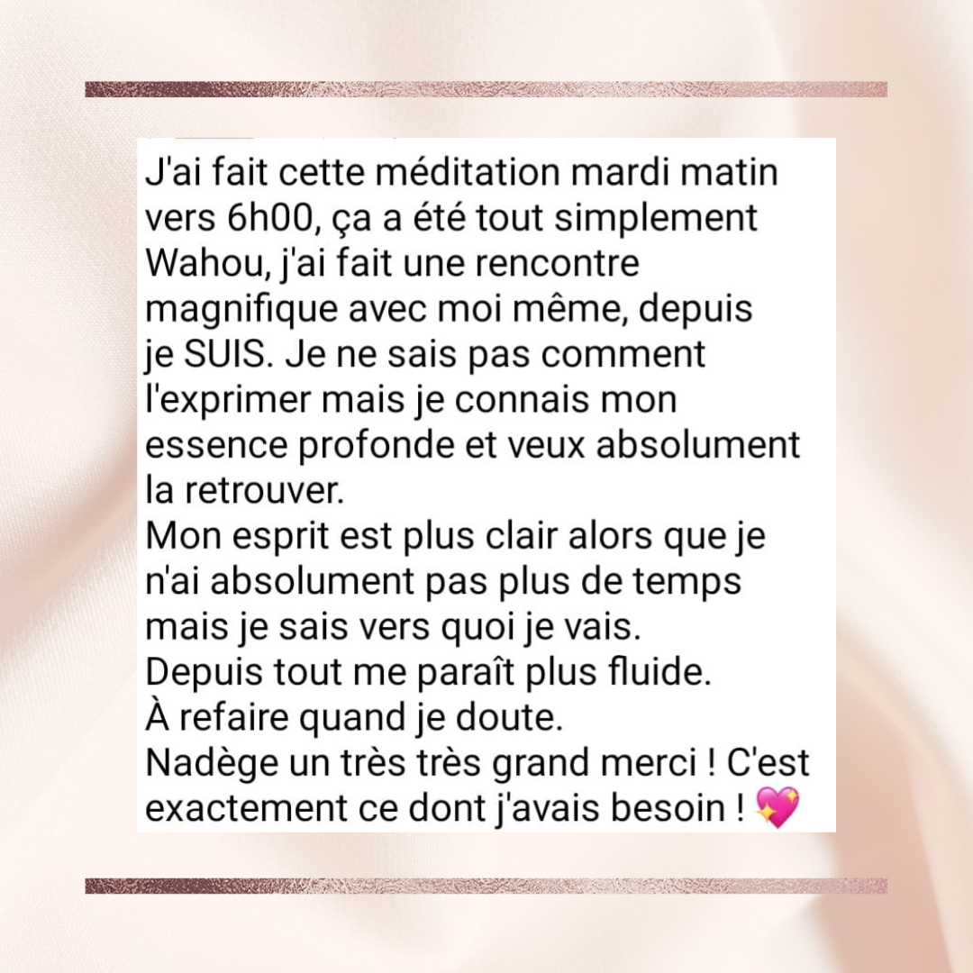 Merci Nadège pour cette magnifique méditation qui m'a fait un bien fou.